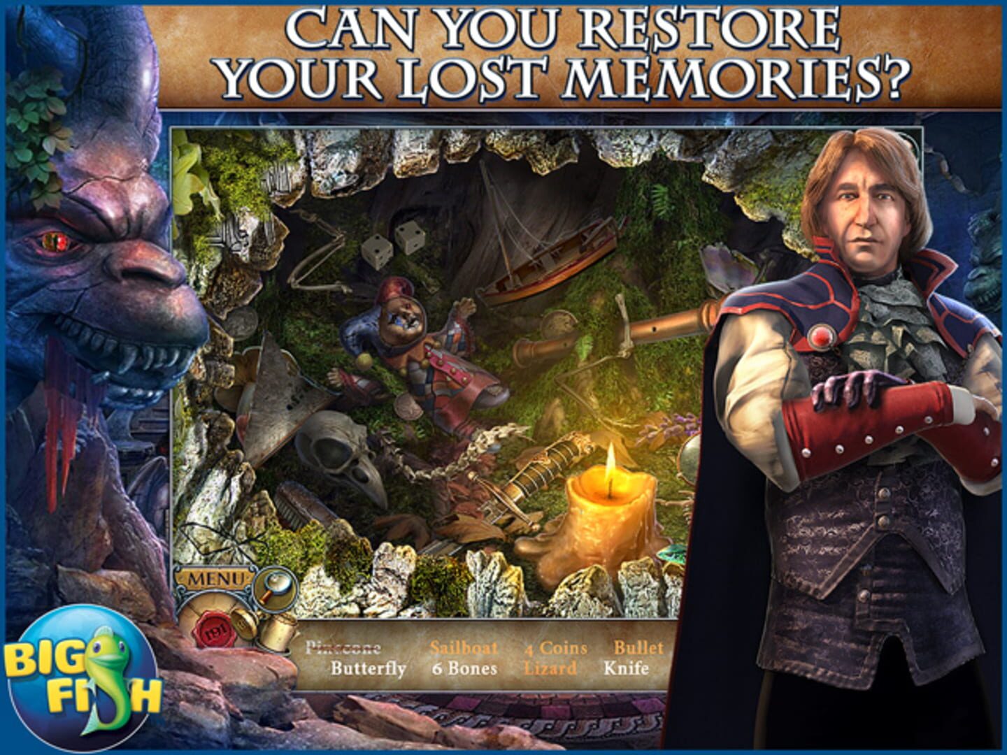 You awake in a cell with your memories gone to find you’ve been sentenced to death by the cruel Count D’Morten. Luckily, a masked stranger has other plans, and with his help, you manage to escape your prison. Armed with a magical amulet that can turn back time, you must now find a way to restore your memories and save your true love from a tragic fate in this heart-pounding Hidden-Object Puzzle Adventure! Journey to another world to save a loved one in the bonus game. Find hidden morphing objects and collectibles! Includes a comprehensive strategy guide. Earn achievements. Soundtrack, wallpapers, concept art, and more!